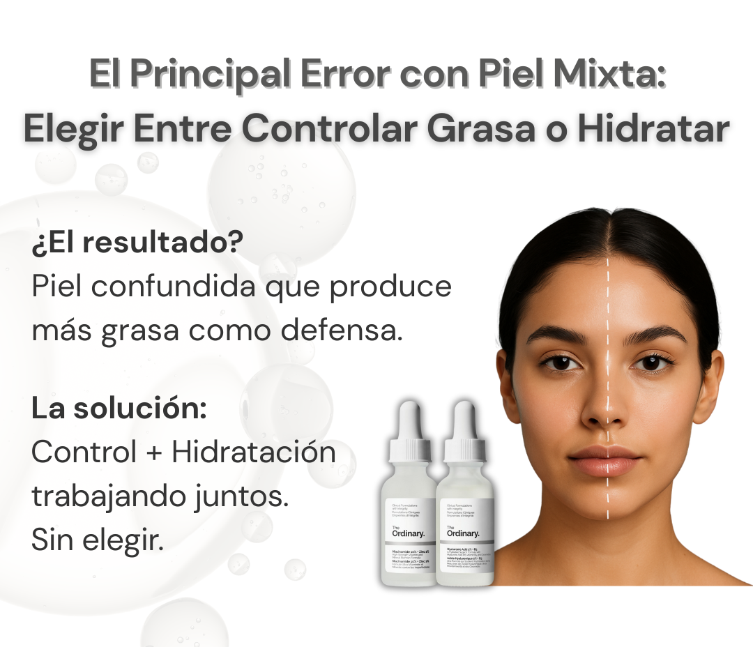 ¡Sí! La niacinamida controla el exceso de grasa sin resecar, mientras el ácido hialurónico hidrata sin aportar grasa. Balance perfecto para pieles grasas y mixtas.